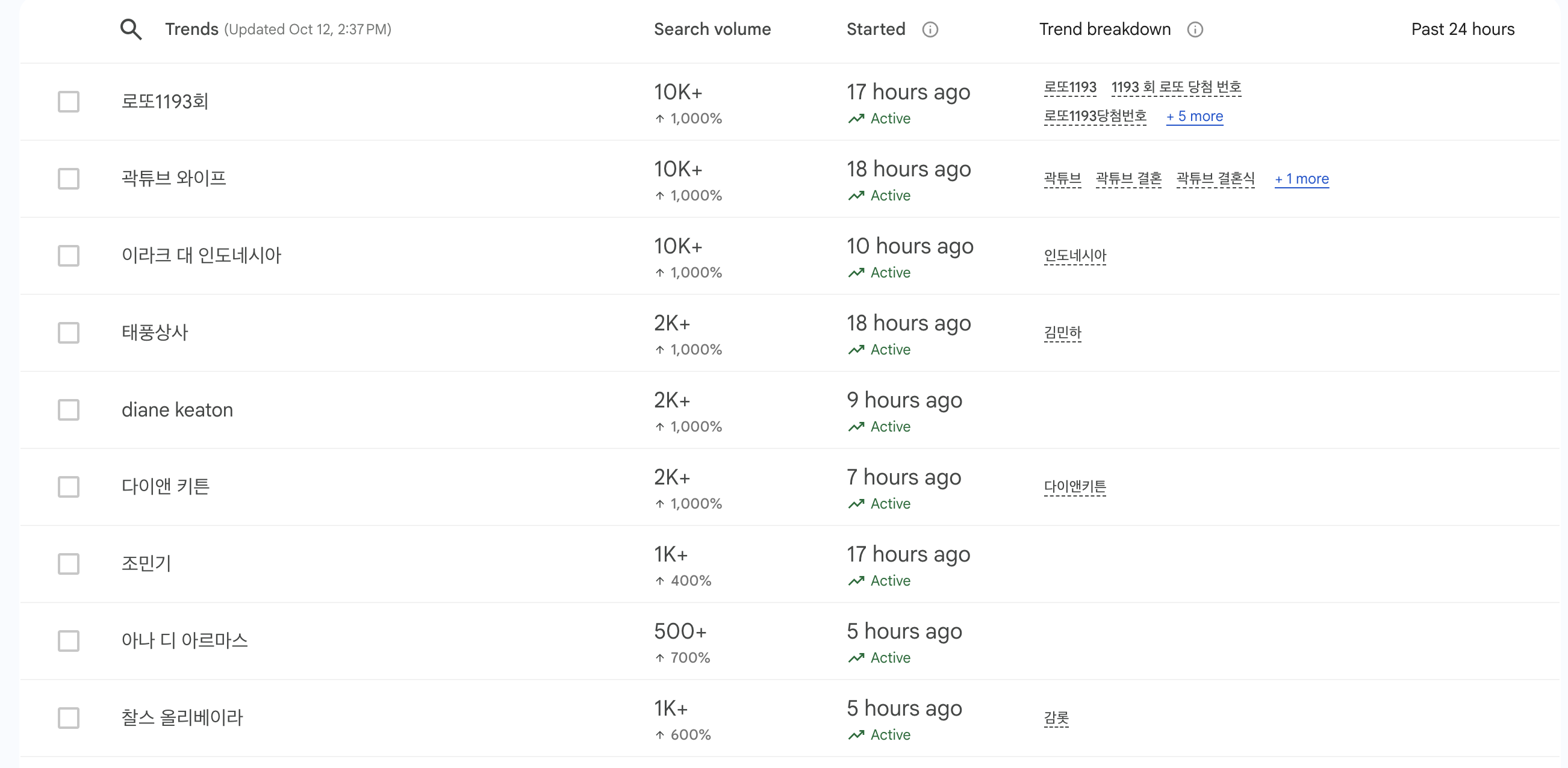 근황 기사·파파라치 보도(LA 외출 등)로 검색량 급증. 대형 신작/이슈보다는 근황 중심 트래픽.